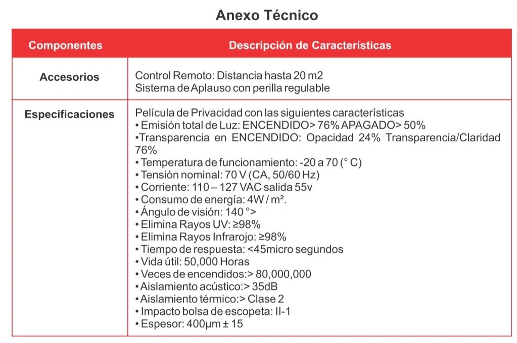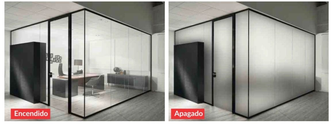 Nuestra película inteligente está hecha para disipar La Luz proporcionando privacidad. Al aplicarle una corriente eléctrica las partículas se ordenan permitiendo la visibilidad, al interrumpir la corriente las partículas regresan a su estado inicial y la película se ve opaca.